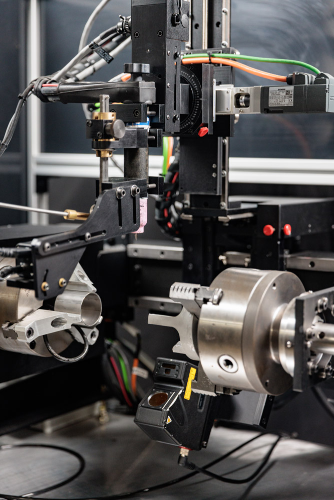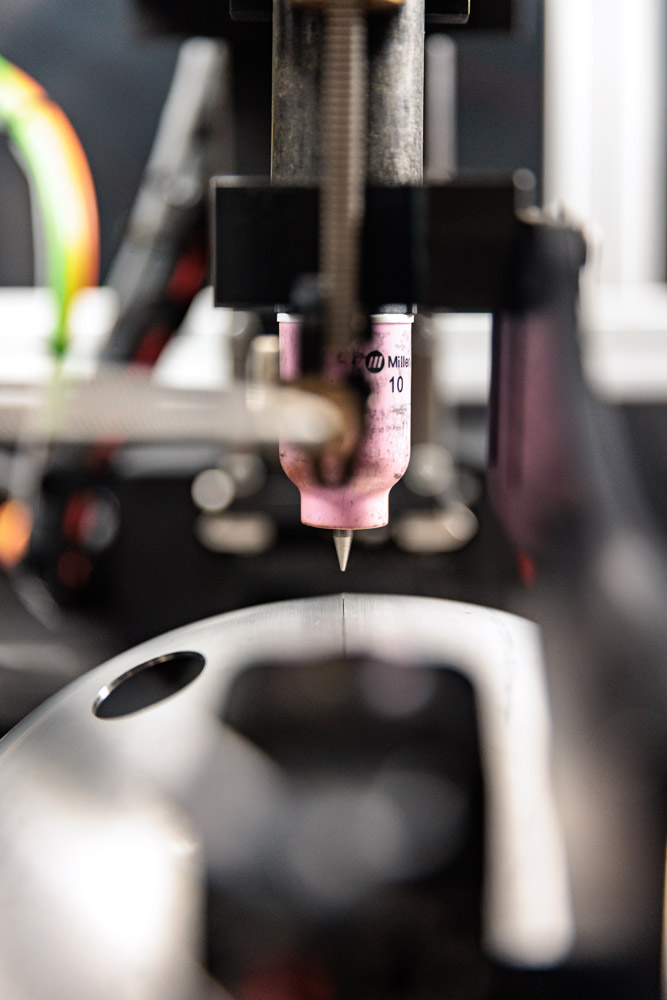 The system included a 400 Ampere D.C. power supply, Arc Voltage Control, A.C. Servo Driven Wire Feeder, A.C. Servo Driven Dual Spindle Lathe.
