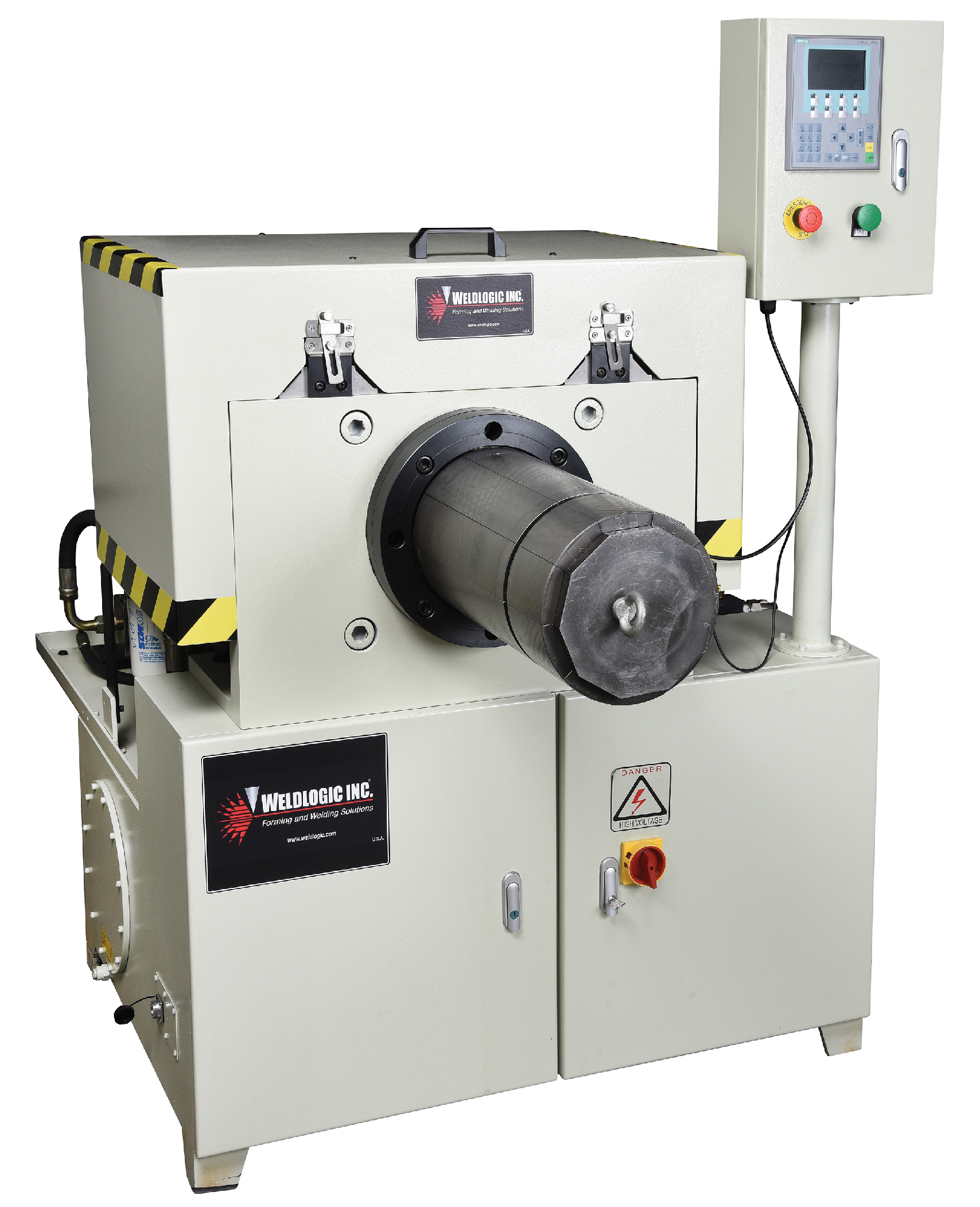 To pre-form the lead and lag of difficult to form materials. Weldlogic engineers have designed a compact 12 ton press with hardened tooling to form the ideal lead/lag edges.